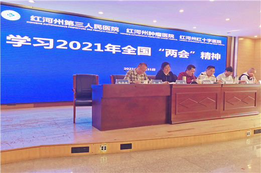 近日,红河州第三人民医院召开干部大会,认真学习贯彻习近平总书记在全国“两会”期间的重要讲话和全国“两会”精神,医院党委副书记、院长杨连升指出,2021年全国两会系统总结了去年和“十三五”时期的发展成就,科学谋划了“十四五”经济社会发展的主要目标和具体任务,对2021年经济社会发展作出全面系统部署,对于进一步坚定信心决心,凝聚全党全国各族人民的智慧和力量,开启全面建设社会主义现代化国家新征程具有十分重大的意义。习近平总书记在全国两会期间的重要讲话,高屋建瓴、思想深邃,具有很强的全局性、战略性、指导性和针对性,为我们做好各项工作提供了根本遵循。